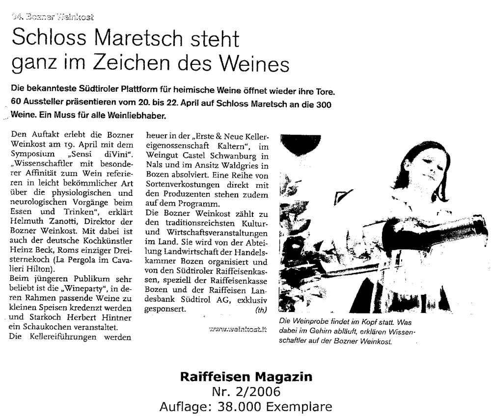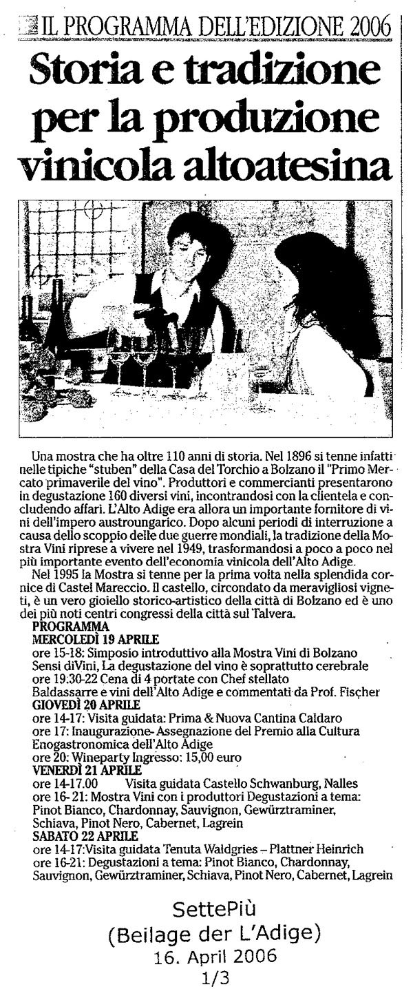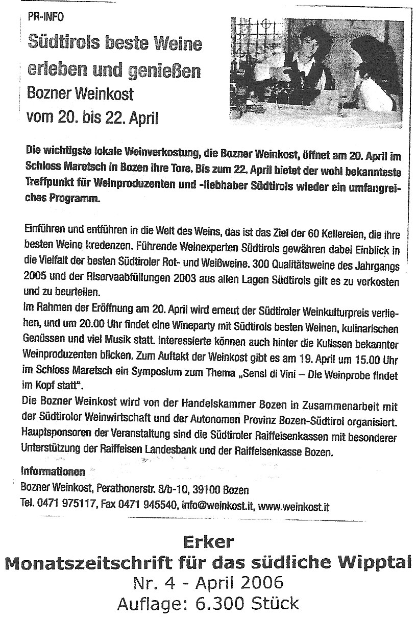 Südtiroler Weine erleben und genießen - Sinnerlebnis Weinprobe, Infokasten und Programm Weinkost 2006
